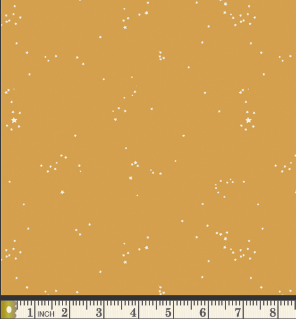 A golden mustard field sprinkled with tiny, twinkling stars.