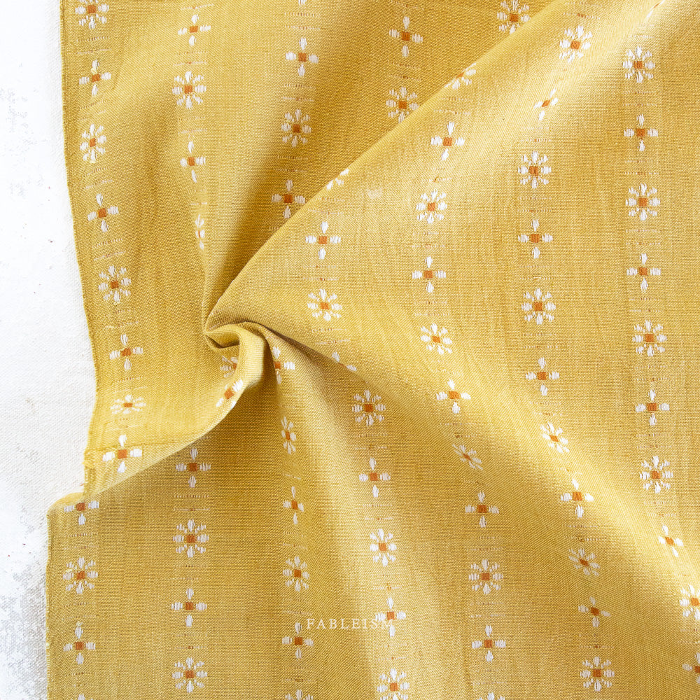 A sweet yellow hue sprinkled with tiny white daisies—think golden hour in fabric form. Sweet, sunny, and begging to be stitched into something cute.