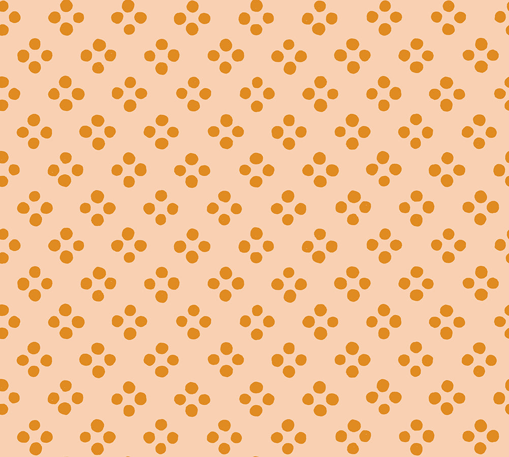 Cheerful golden dots form a subtle, modern grid on a peach background.