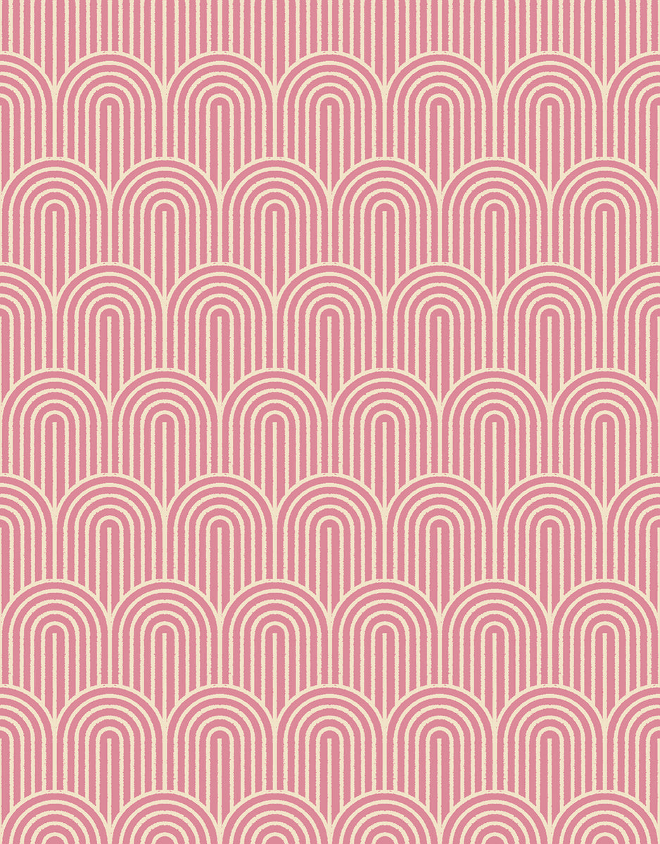 Sweet blush arches layer like soft vintage wallpaper, blending romance with geometry.