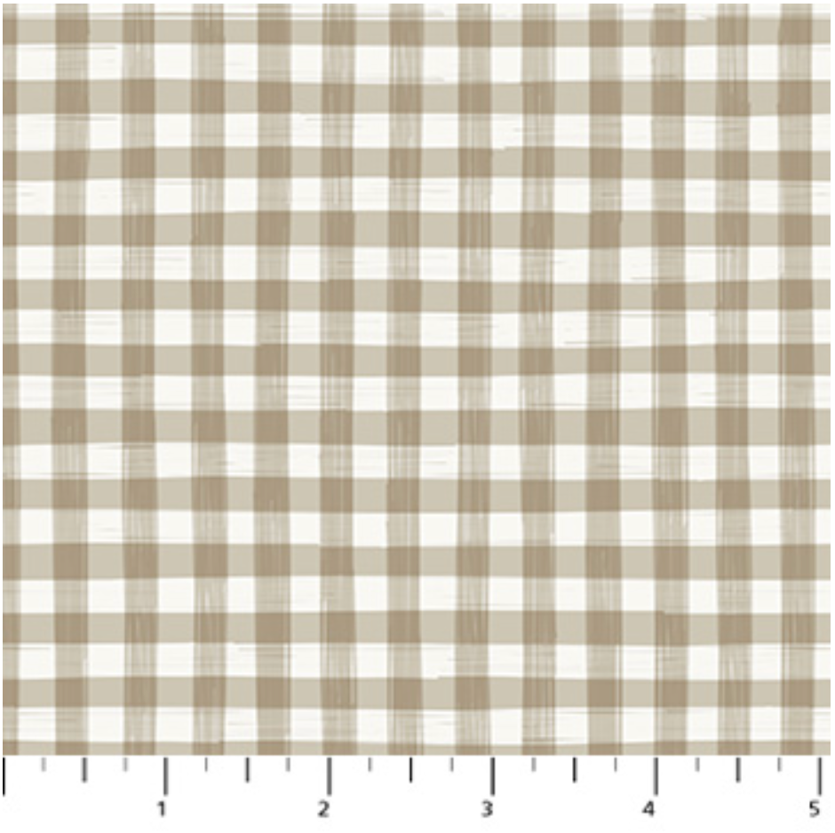 A soft taupe gingham with hand-painted strokes offers rustic simplicity.