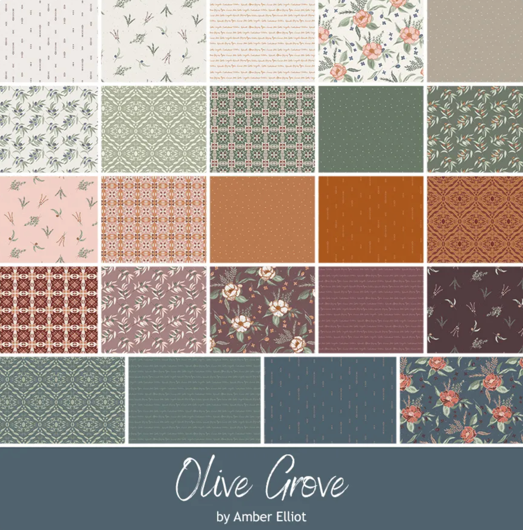 Forty pre-cut strips showcasing the rich variety of Olive Grove in an easy-to-piece format.