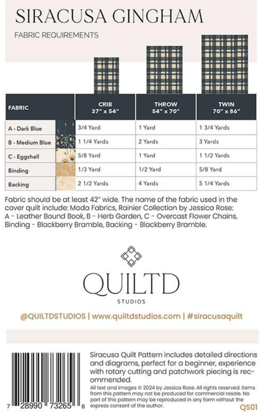 The Siracusa quilt pattern by Jessica Rose offers a fresh, modern take on classic plaid. With bold lines and beautiful symmetry, this design is perfect for showing off coordinating prints or creating a cozy, sophisticated statement piece. Available in crib, throw, and twin sizes, it’s a stylish and satisfying project that comes together quickly with simple piecing—ideal for confident beginners and seasoned quilters alike.