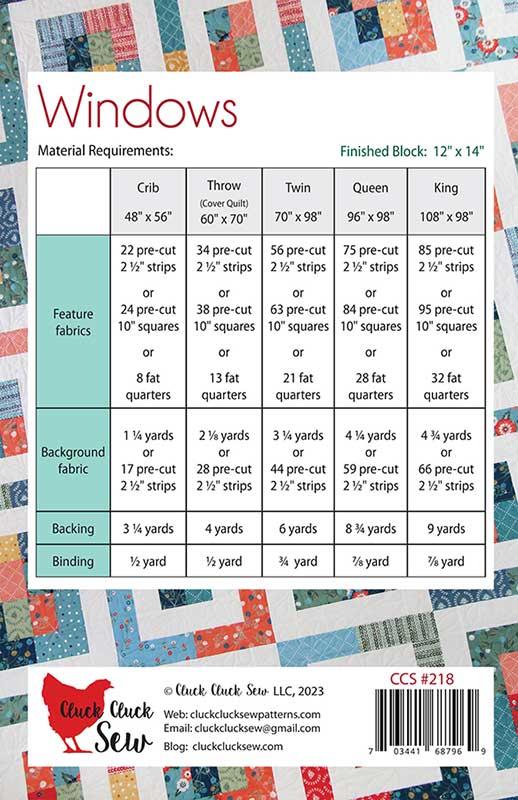 Windows Quilt Pattern by Cluck Cluck Sew is backordered and will ship as soon as it is back in stock.