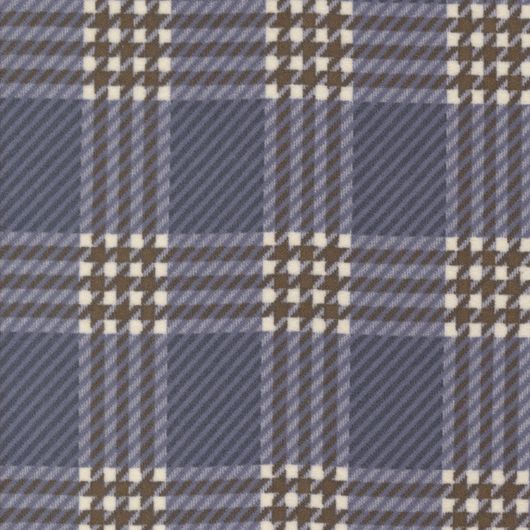 Dusty blue flannel with brown and ivory plaid striping. Adds a vintage farmhouse feel to quilting projects or flannel shirts.