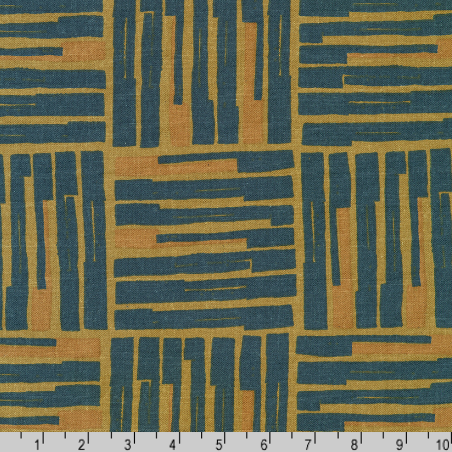 A modern geometric of uneven teal bars stacked against a golden background, adding bold texture and visual movement to your projects.
