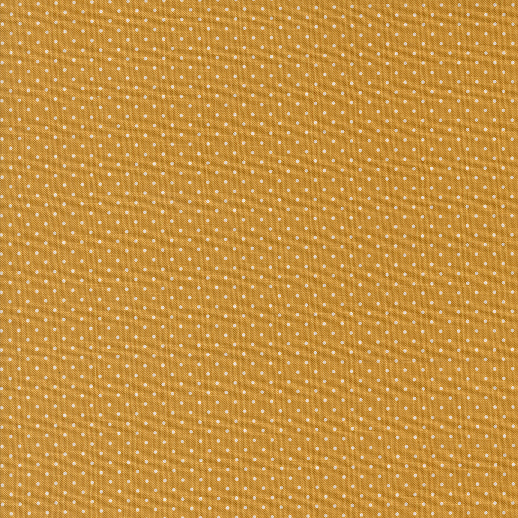 Warm golden background sprinkled with playful white dots that feel like sunshine in fabric form.