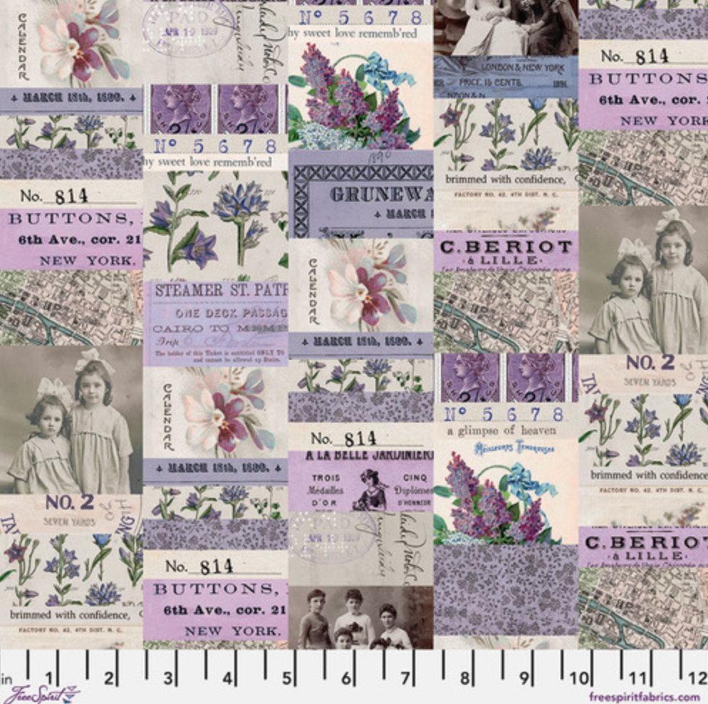 A layered blend of vintage ephemera, florals, and nostalgic prints in soft purples and neutrals. This eclectic design captures the magic of Tim Holtz’s collage style.