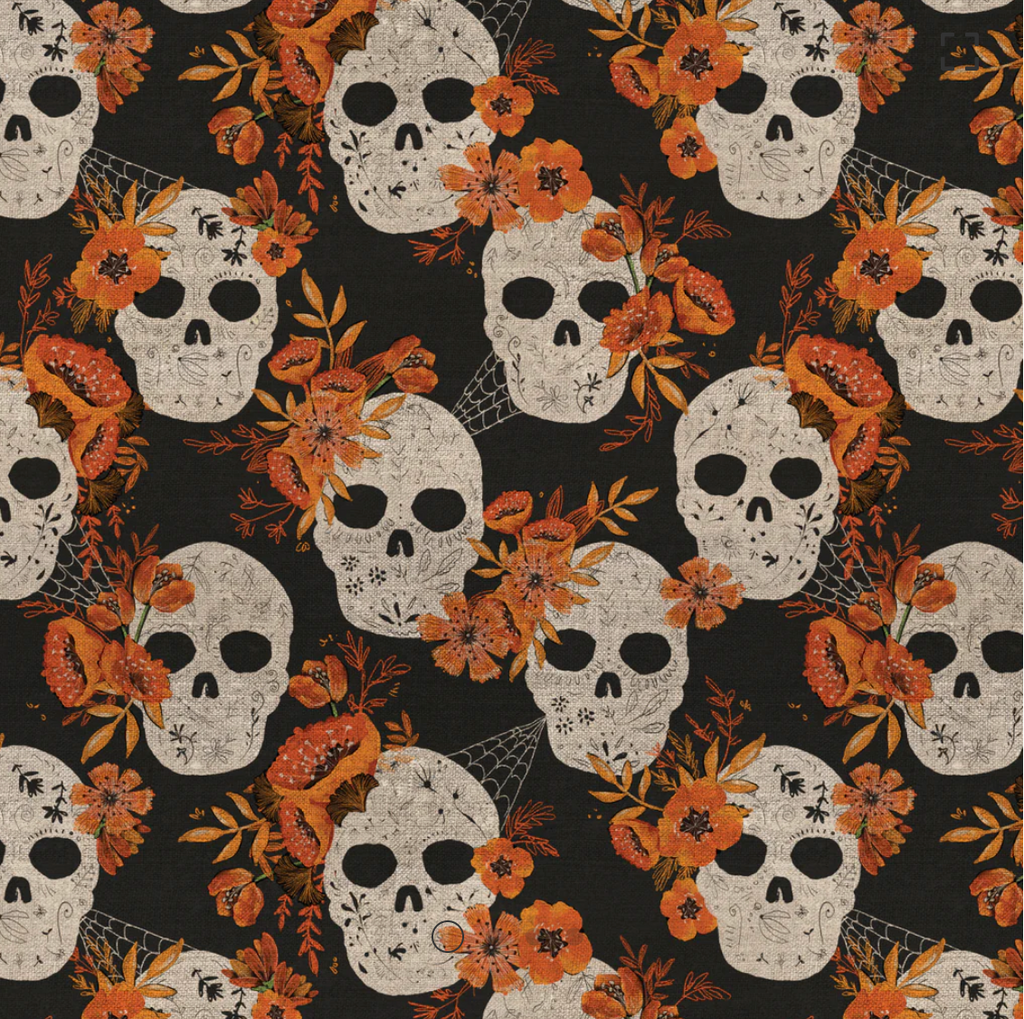 Wicked Garden Black Sophisticated Skulls 49240303 01 by Camelot Fabrics for Foust Textiles