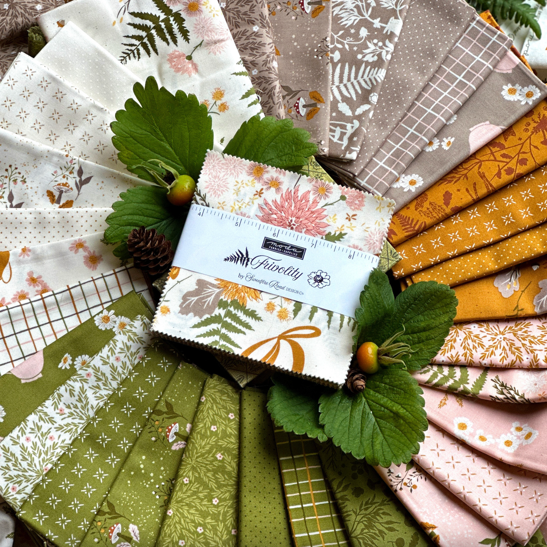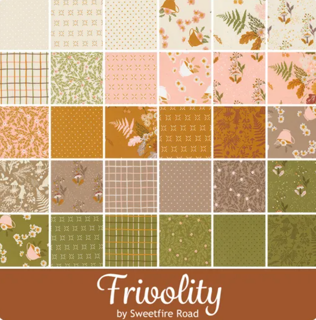 Step into the woods with Frivolity — a fabric collection that feels like a storybook stroll through the forest. With earthy greens, golden mustards, soft blush tones, and woodland-inspired prints (hello, mushrooms, ferns, and foxes!), this bundle is full of cozy whimsy. Perfect for autumn quilts, nature-lovers, or anyone who’s ever wanted to bottle up a bit of forest magic and stitch it into something beautiful.