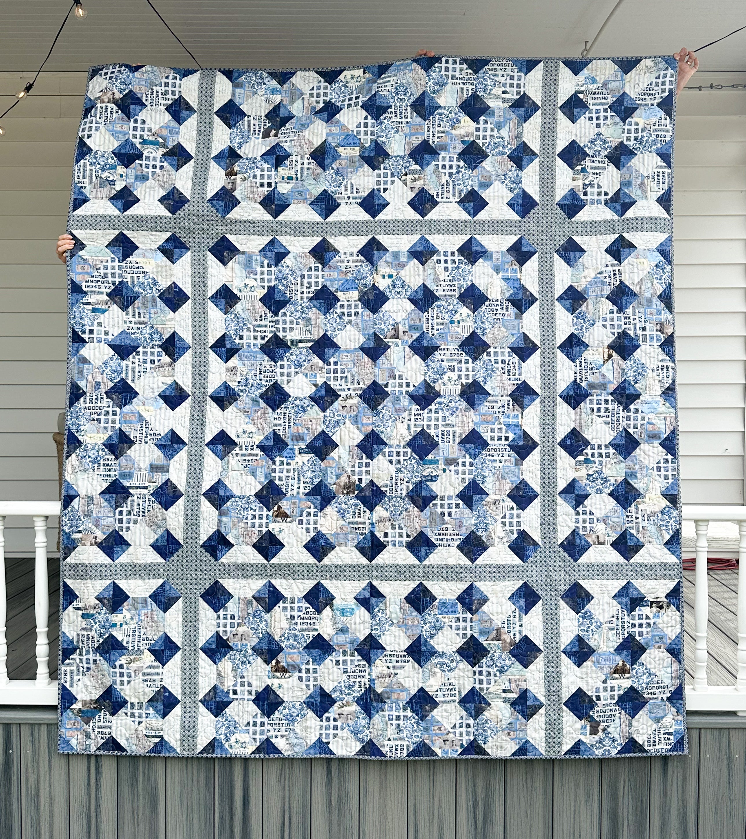 Inspired by the timeless beauty of hand-crafted tiles, the Tiled in Indigo quilt kit brings a fresh, artistic twist to classic patchwork. Designed with Tim Holtz’s Eclectic Elements Indigo fabrics, this quilt is a striking study in blue—layering textures, typography, and rich indigo tones that feel both vintage and modern.